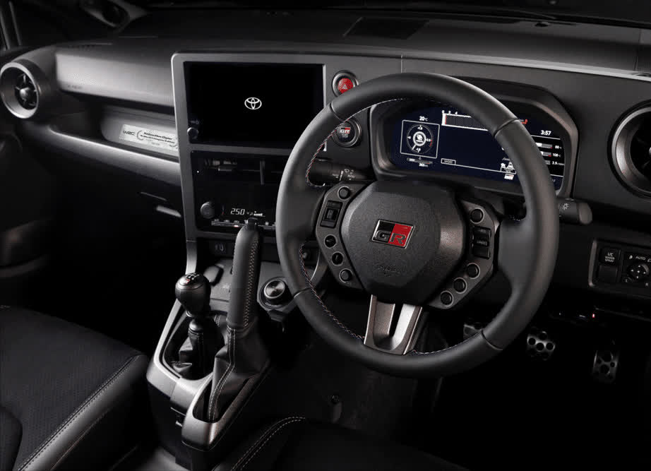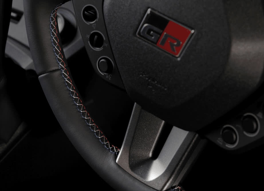 外观套件上,该GR Yaris也获得专属的引擎盖开口,前后蓝色的刹车卡钳和大尾翼加持,前格栅上也镶嵌上代表车手国际(法国)的三原色点缀,整车颜色也是丰田在2025年的运动色Black Gravite,一眼这能看出这辆特别版GR Yaris特别的身份。
