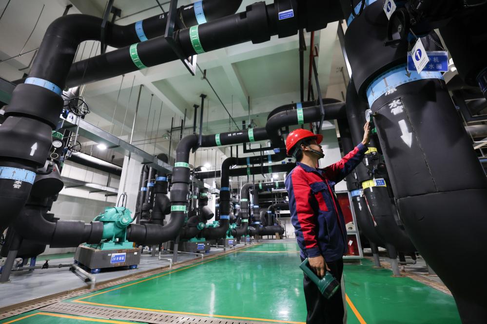 工作人员在贵安超算中心数据机房附属设施内工作(资料图片)。新华社记者 刘续 摄