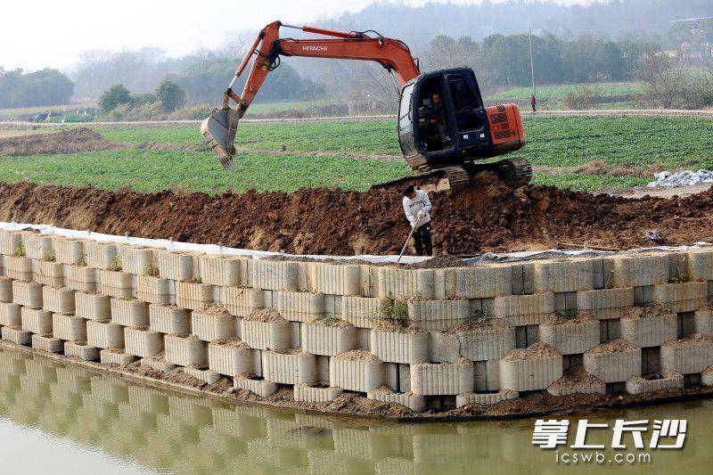 据了解,侍郎河治理工程摒弃传统硬质化护坡模式,采用“工程防护+生态恢复”的双重设计,环保砖护坡既能抵御水流冲刷,又能通过植被根系增强土壤稳定性,同时为微生物提供栖息空间,助力水质净化。工程还同步规划了河岸休闲步道、露营岛等,未来将串联起河道沿岸千亩油菜花田自然景观与乡村风貌,形成“十里河廊水清草绿花开”的生态画卷。“以前河道杂草丛生,雨天还容易水土流失。现在整治后,不仅河水会变清,今年春天还能赏花打卡。”施工负责人守在现场查看施工进度,看着日渐成型的生态护坡,脸上洋溢着笑容。